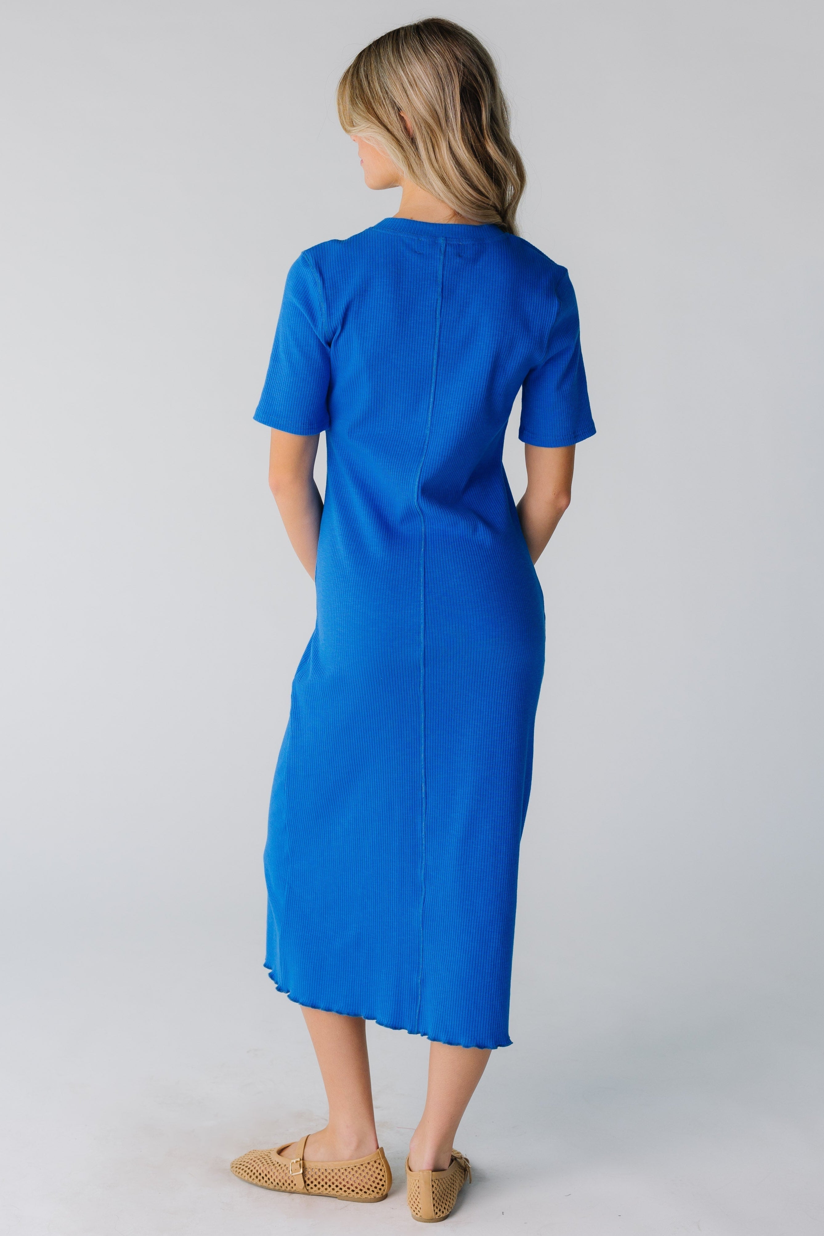 Brass & Roe Ribbed Midi Lettuce Hem Dress